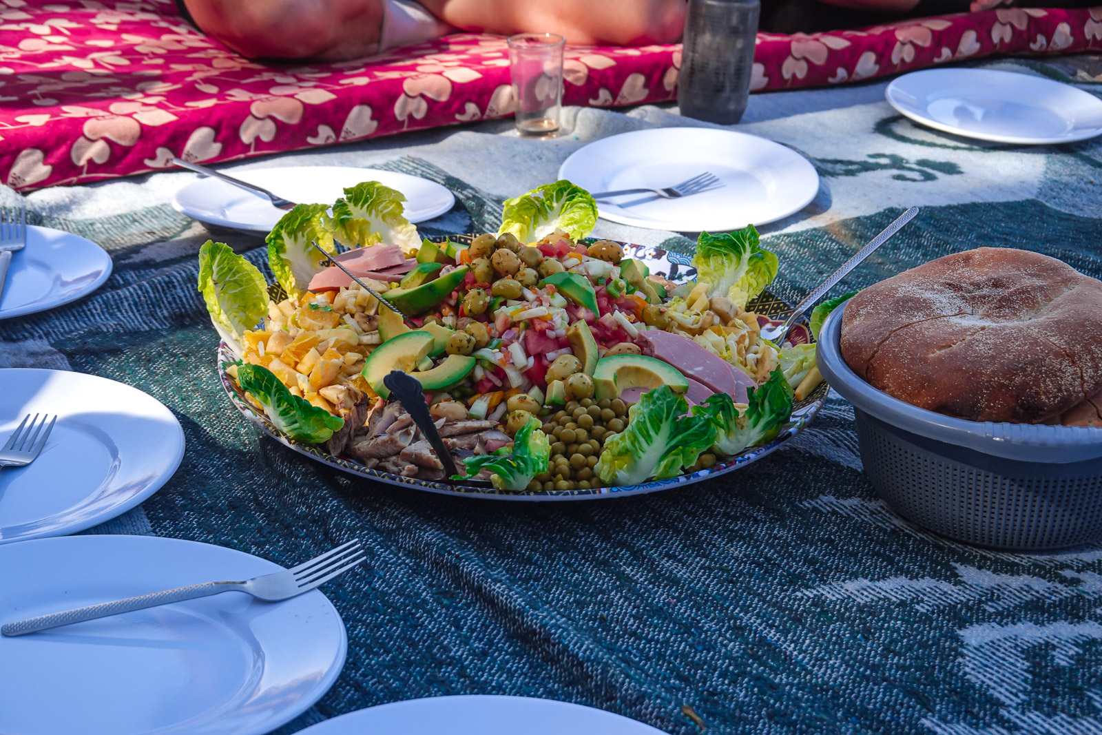 Podczas naszych wypraw dbamy nie tylko o trasę, ale i o to, co ląduje na talerzu. Codziennie możecie cieszyć się lokalną kuchnią w najlepszym wydaniu! Z nami podróżuje kucharz Tizi n’Ride, który każdego dnia przygotowuje zjawiskowe pikniki w najpiękniejszych miejscach na trasie — prosto z grilla, z glinianego tajine’a, zawsze świeżo, aromatycznie i z sercem. A do tego oczywiście obowiązkowa marokańska herbata — pita na dywanie, z widokiem.